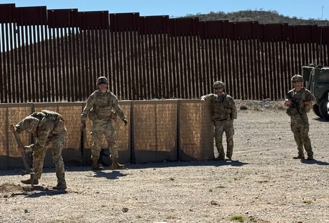 Walking from a blasted mountain top--a planned site for new border wall construction--to a makeshift military camp along the border in a remote part of southern Arizona led to a tense yet revelatory moment.