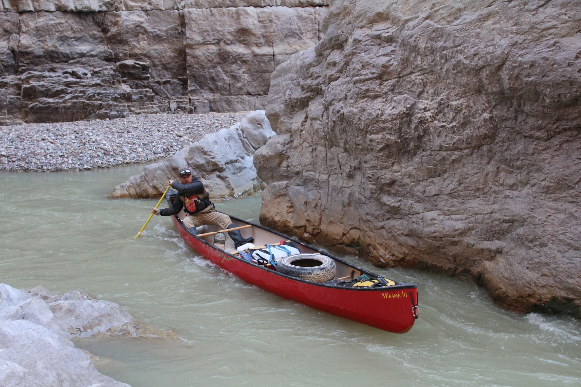 Billy Miller, a Redford landowner and river guide who stands to lose both his property and his job to the wall, weaves through Santa Elena Canyon's infamous Rock Slide –– a trip that the proposed wall could cut off from public access. (Photo credit: Sam Karas)