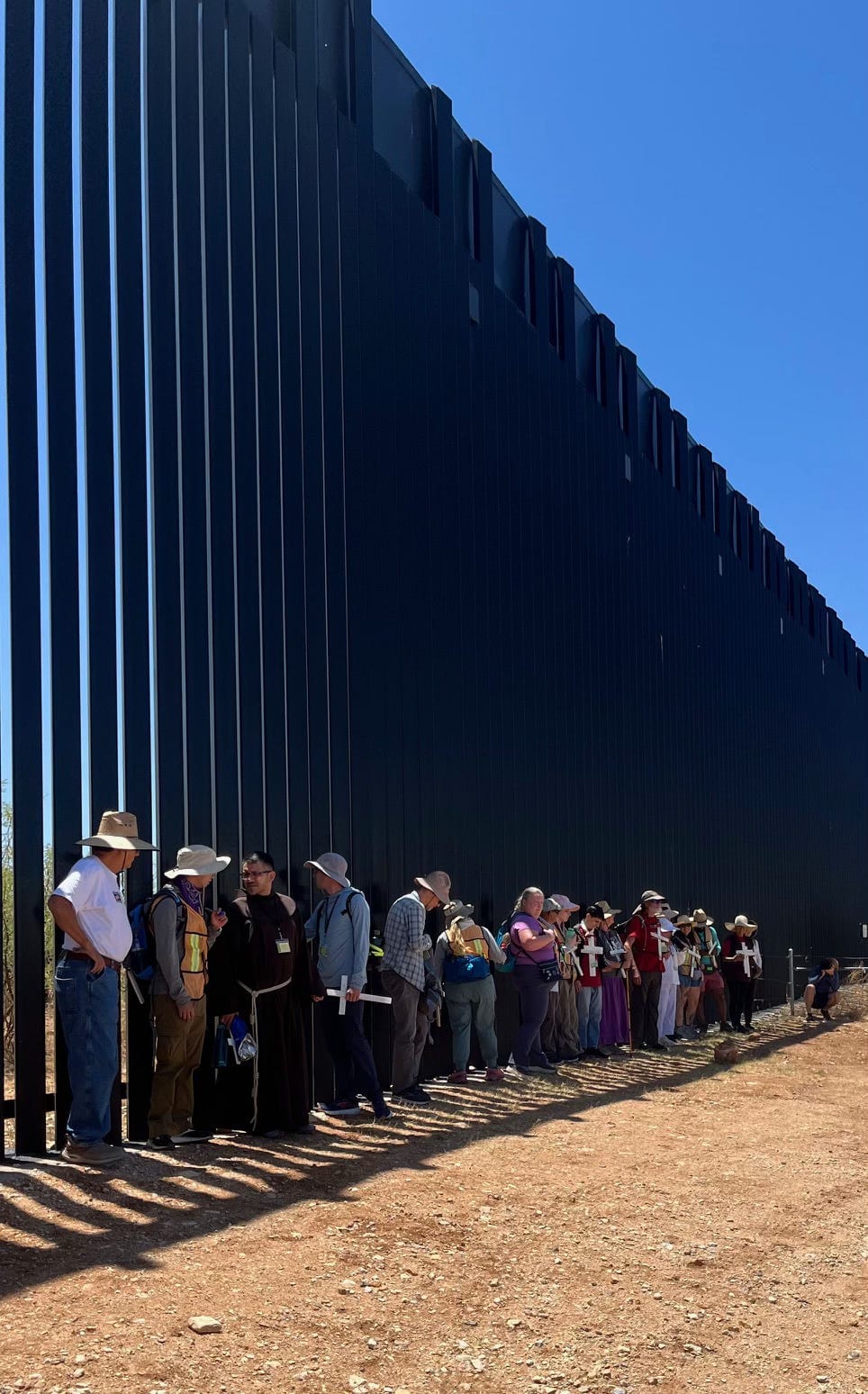 The annual Migrant Trail began Monday with a solemn ceremony to remember and honor the people who have died crossing the U.S.-Mexico border. The walkers gathered in a circle in front of the towering border wall next to the Sasabe port of entry. The wall was so high that the painted-bla…