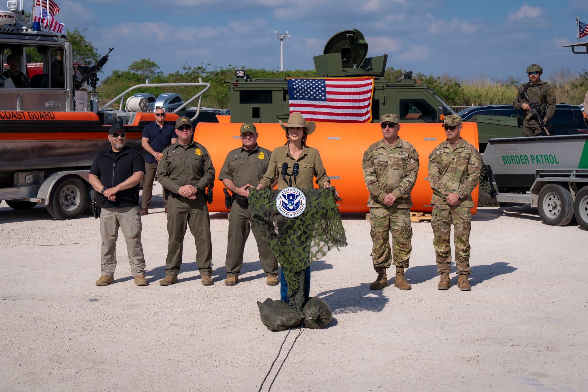 Kristi Noem, Secretary of the Department of Homeland Security, held a press conference on January 7 in Brownsville, Texas, announcing the installation of the floating barriers. The Trump administration said it will install more than 500 miles. Each cylindrical buoy is approximately 15 feet long and 5 feet tall and are being anchored with steel cables to the river’s floor by a floating barge. The company constructing the barriers is Gibraltar Perimeter Security based in Burnet, Texas, at a cost of $96 million — approximately $5.6 million a mile.