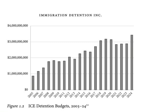 We discuss all of this: the billions made not only by major prison companies like Geo Group and CoreCivic but also by subcontracted services such as food, medical care, and commissary. The authors highlight that substandard food and health services are part of the business model. We discuss the financial dependencies that local governments have developed through their revenue-sharing agreements with ICE. Additionally, we examine the rapid growth of the detention industry—from 7,000 people in the early 1990s to 60,000 today—and how this growth has accelerated in the last eight months under Trump.