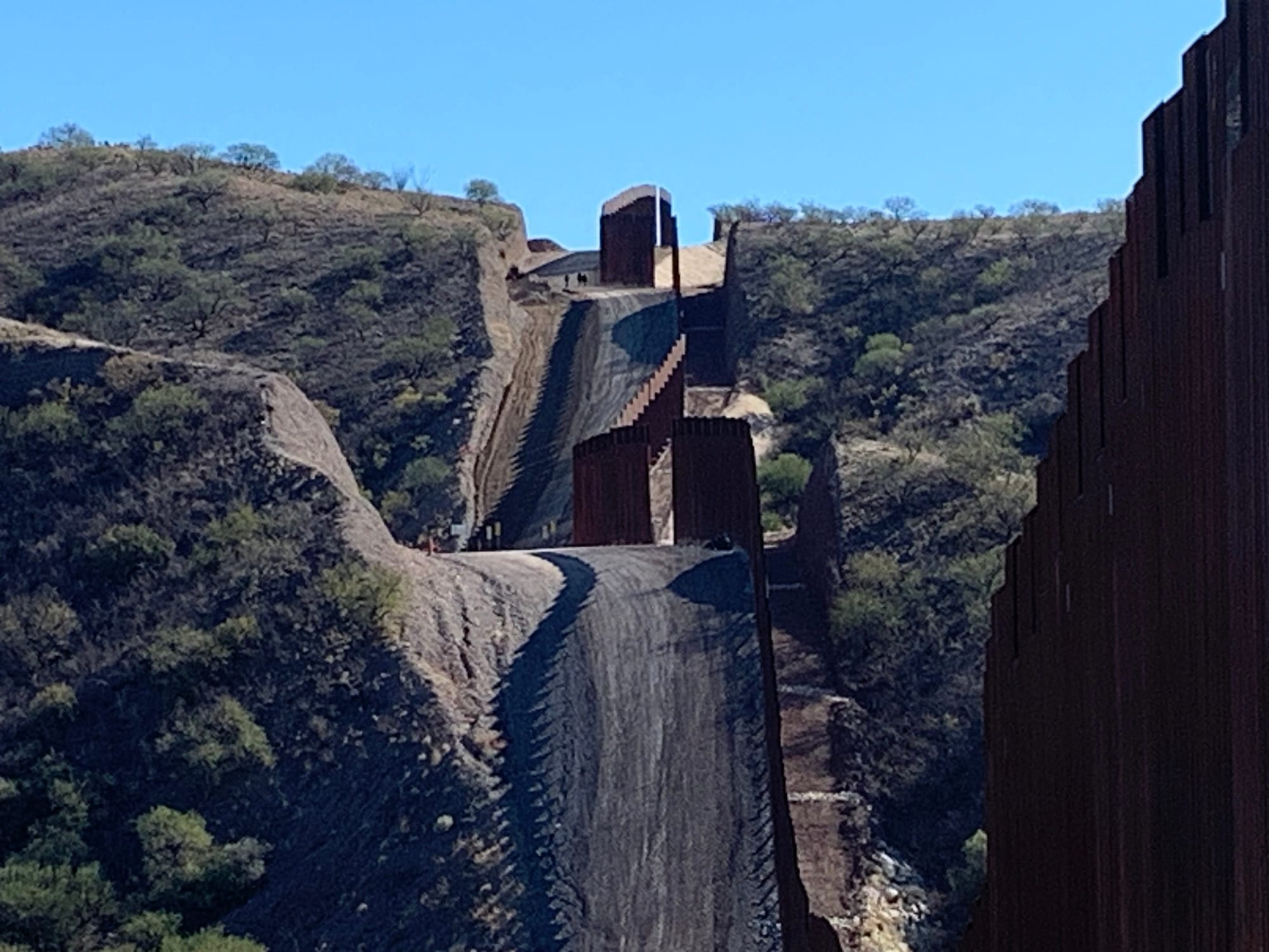 The border wall near Sasabe, Arizona in 2024. (Photo credit: Melissa del Bosque)