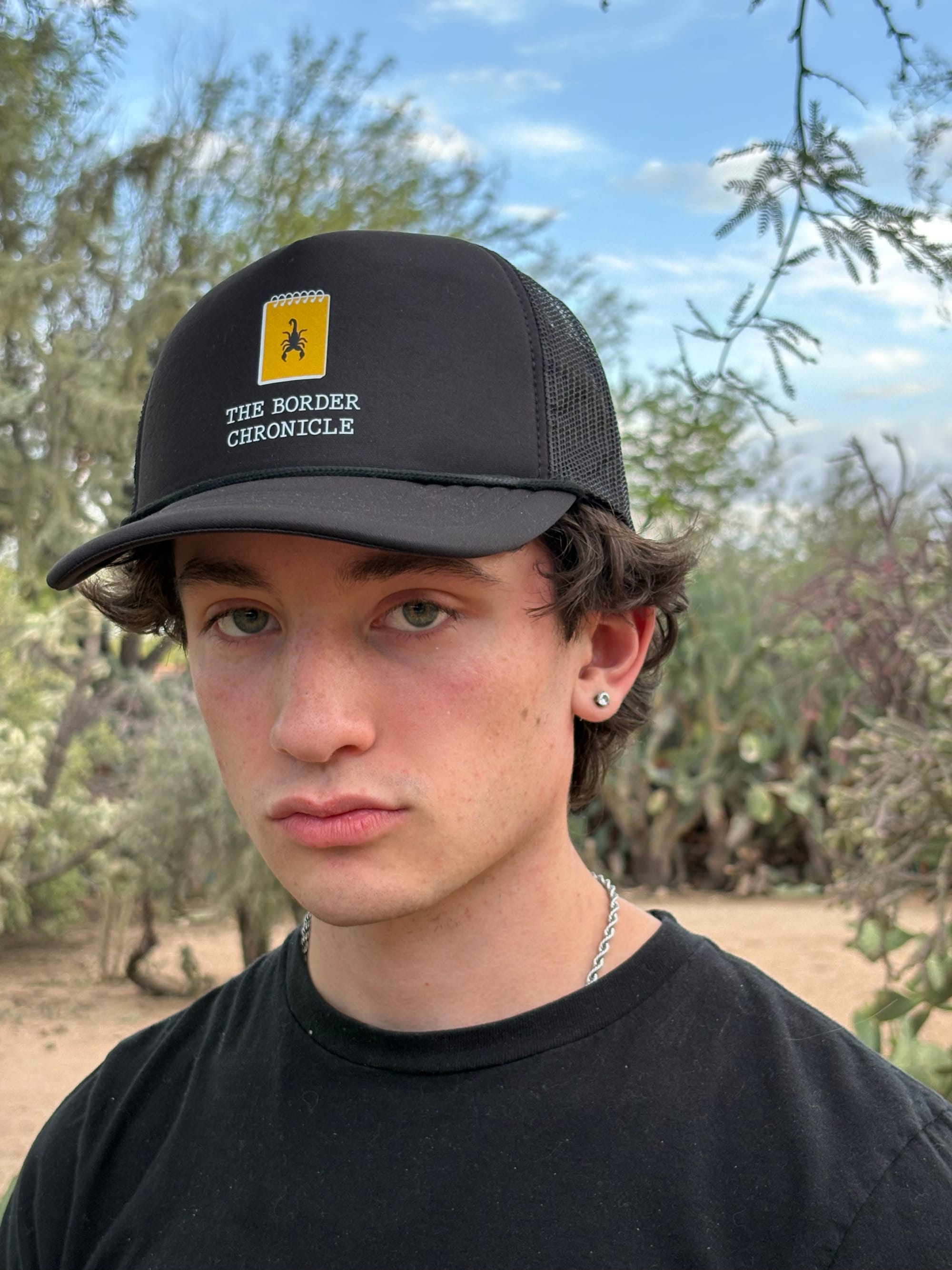Look at these new, awesome tote bags and hats, all proudly designed and made by the Tucson-based union print shop, The Gloo Factory. They could be yours if you sign up as a sustaining member of The Border Chronicle team today! (Also, bonus points if you spot the alien in the cactus, our previous merchandise model, haha. It was a windy day. 😄)