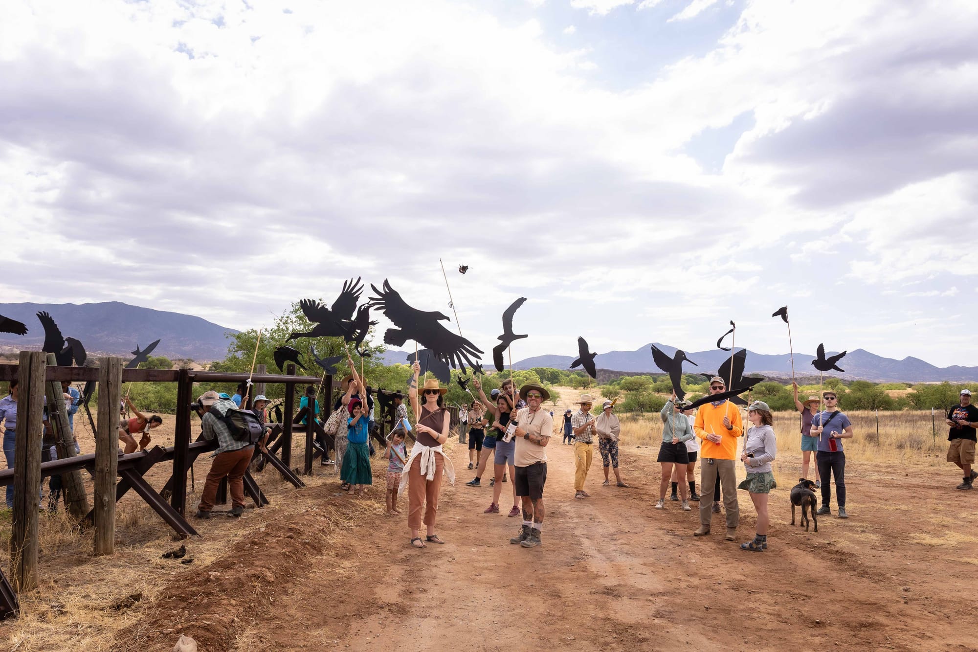 Also, as promised some fabulous photos by Kathleen Dreier from the binational protest on May 31 in southern Arizona against the Trump Administration building a 30-foot wall through the San Rafael Valley, a vital wildlife corridor for endangered species like the jaguar. Left to right, participants on both sides imagine a migratory pathway without barriers, a cross-border volleyball game, and Santa Cruz County Sheriff David Hathaway speaks on the importance of a binational border culture.