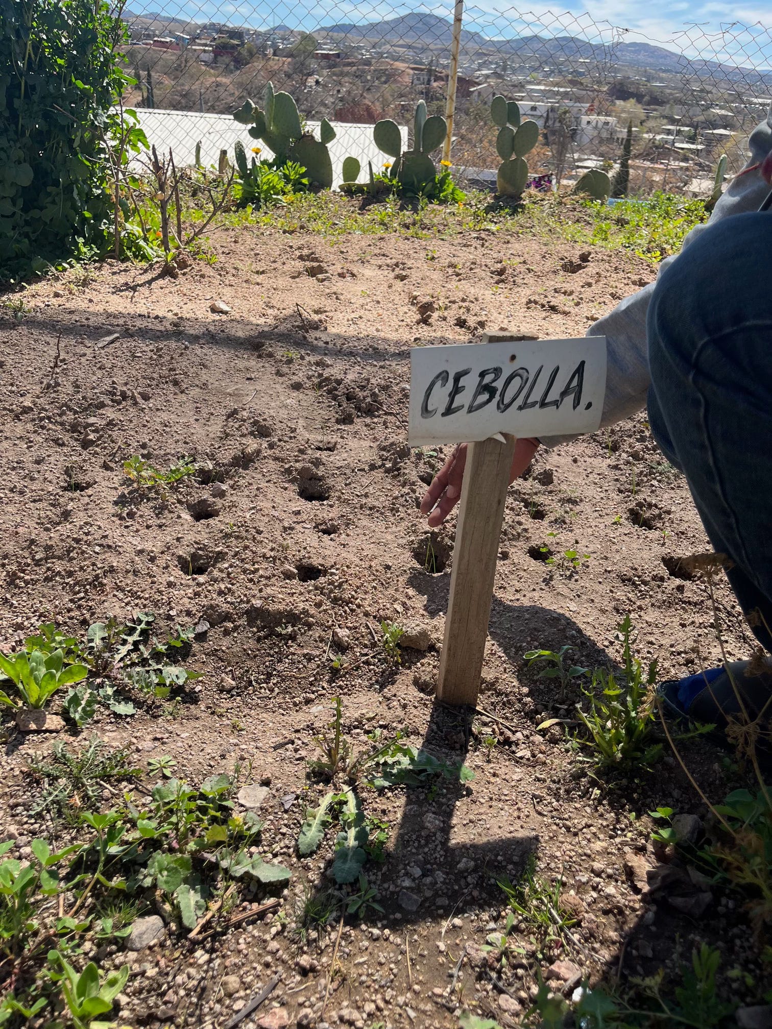 He showed me the radishes, the calabazas, the zanahoria. He showed me what remained of the tomatoes and chiles that got blasted by the cold. He showed me the lombrices, earthworms burrowing in the composting soil topped with banana peels. As he showed me all the plants, Tomás talked about how much he loved farming, how much he loved planting seeds, how much he liked caring for these plants and watching them grow. In Guerrero he had tended his milpa (small parcel of land) of squash, beans, and corn every day. As he spoke, I tried to envision his rural mountain community; over the years I have met many campesinos, small farmers, across southern Mexico, in his state of Guerrero, in Oaxaca, in Chiapas. Having knelt in the soil of the milpas before, I understood how this small garden in Nogales was like a sanctuary, especially in the face of a scary situation, as Cristina and Tomás had told me, away from home, away from your roots, your child’s life in danger, wondering if you would get asylum. When they arrived six months earlier, they applied for asylum on the glitchy, confusing, and difficult-to-use CBP One app with the help of staff at the Casa, a service they offer to all people staying in the shelter. Tomás told me that when things got stressful, “I come here to the garden. And the stress goes away.” He made a motion with his hand. His hand then touched the soil, searching for the plants. He looked up, and his face was serene.