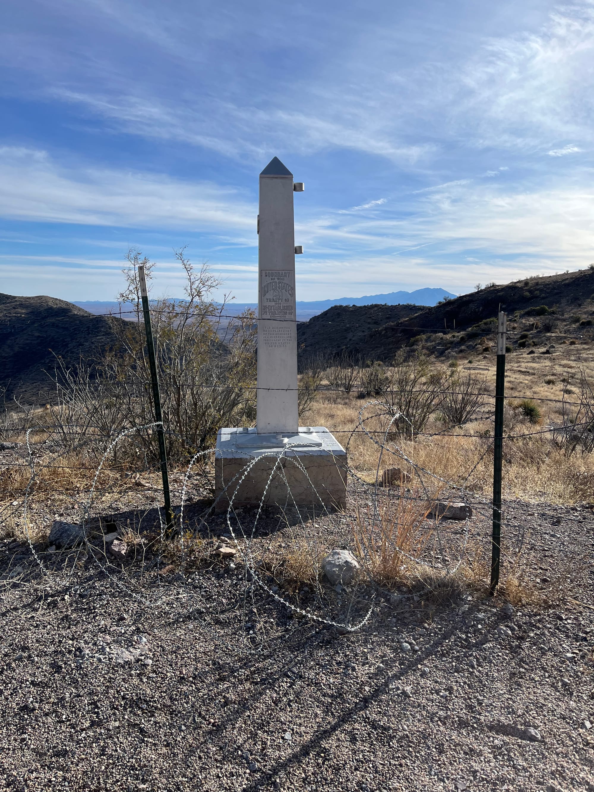 I continue south beneath the watchful eyes of an unmanned $8.9 million surveillance blimp, part of the Tethered Aerostat Radar System. Eyes are everywhere along this stretch of earth, and at mile 3, I catch my first glimpse of the wall. It stretches far across the desert ridges and valleys like a black coachwhip snake. In the distance, it fades into shadow, a fitting symbol of illusory differences. The trees on that side are the same. The surrounding mountains are the same. The rocks, same. Someone divided this place. Where nature has made whole, man has put asunder. In our scientific efforts to understand and categorize the world we inhabit; we have created differences where we should have been fostering similarities. This is the border, yet the line that separates one side from the other is blurred. Unsure of what lies ahead, I trust my GPS navigation to lead me onward.